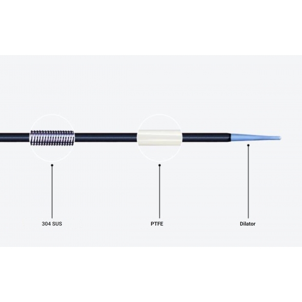 A ureteral access sheath (UAS) used during ureteroscopy to protect the ureter and facilitate multiple instrument exchanges. It allows for repeated passage of the ureteroscope and other instruments, while also improving irrigation flow and visualization within the ureter. Essentially, it acts as a conduit, protecting the ureter from damage during procedures like kidney stone removal.